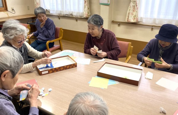 まずは、色とりどりの折り紙をちぎっていきます☆