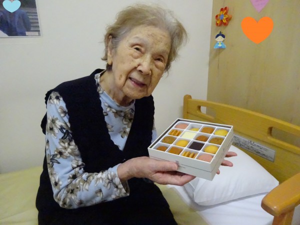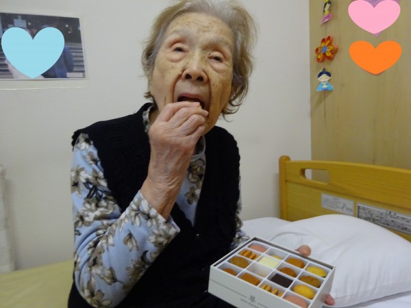本日ご家族の皆様より素敵なお花と美味しそうなお菓子が届きました。