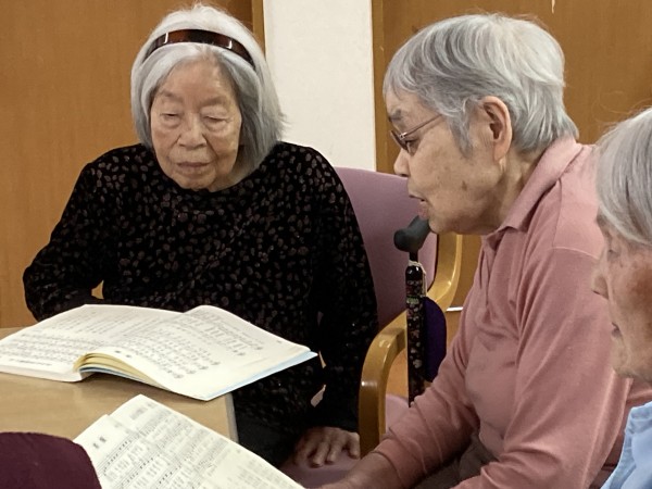 歌集の数が人数分はないので、違う階の方が一緒に歌集を見て歌ったり自然と距離も縮まります。