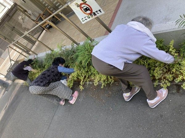 今回はご利用者様を誘ってきて下さった3名と一緒に外の草取りをしました!!!