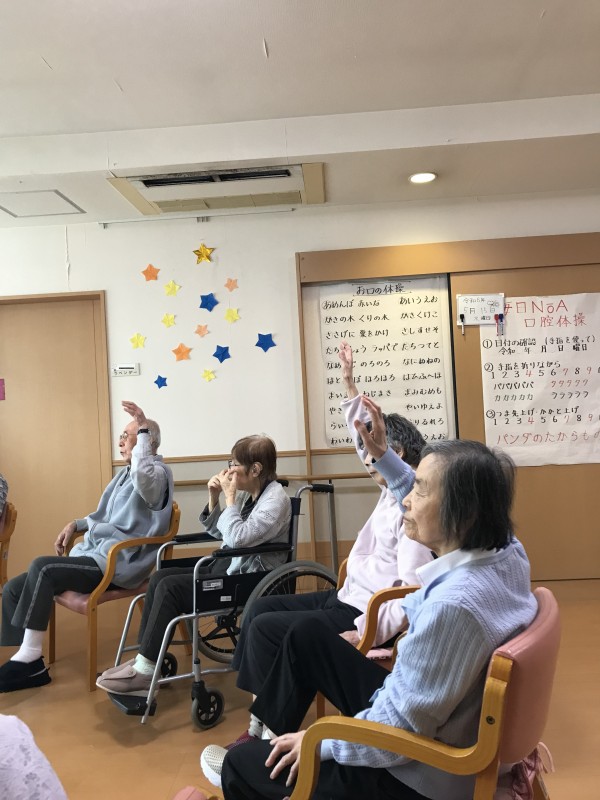 今日はお昼の口腔体操に始まり、1階のご入居者様と一緒に体操教室にも参加され、
