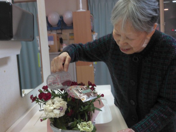 カーネーションのお世話も
