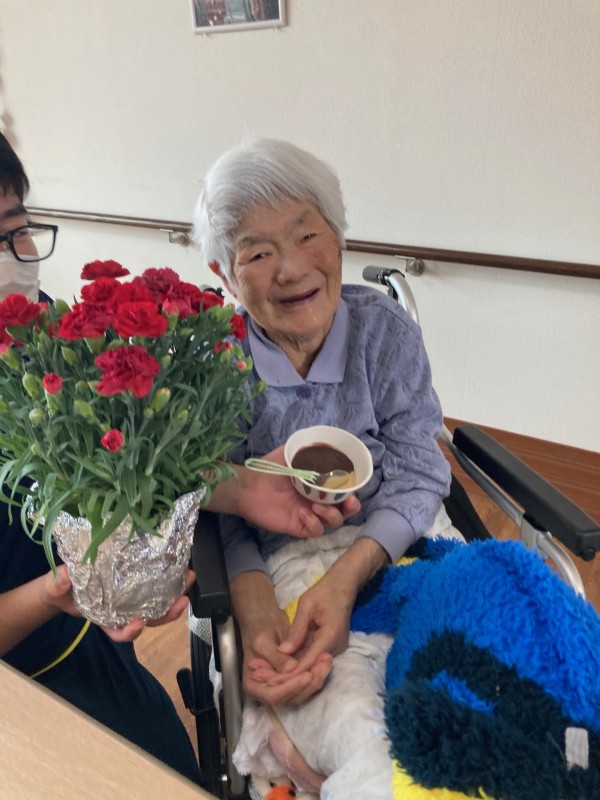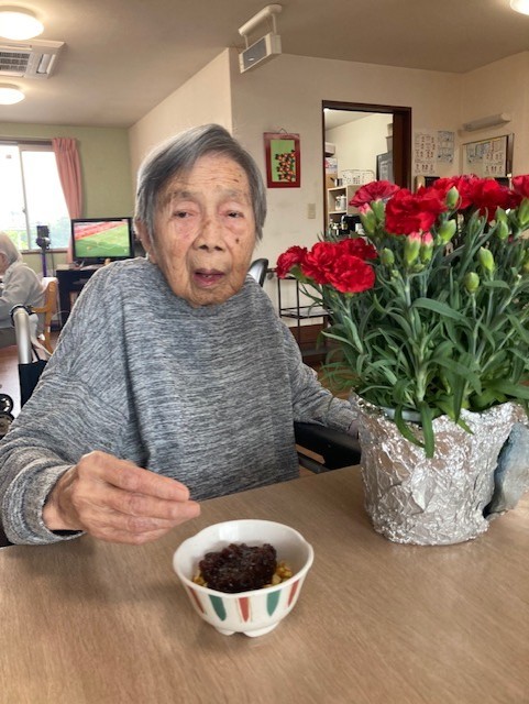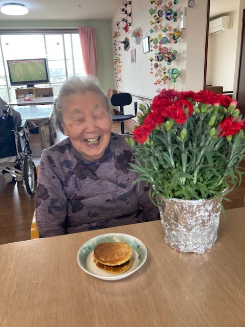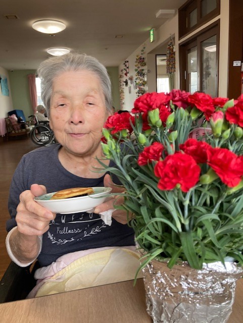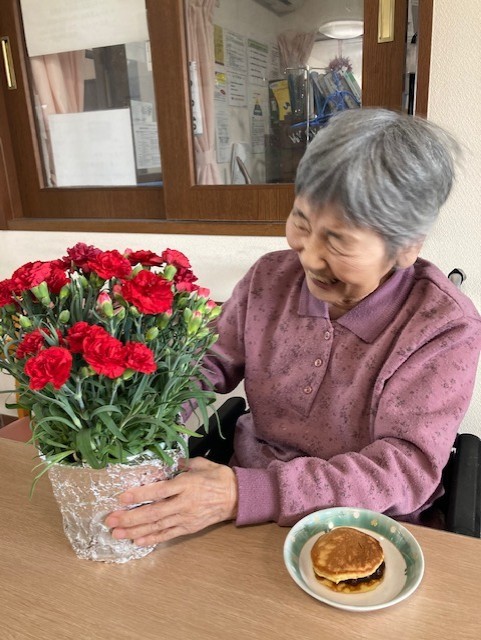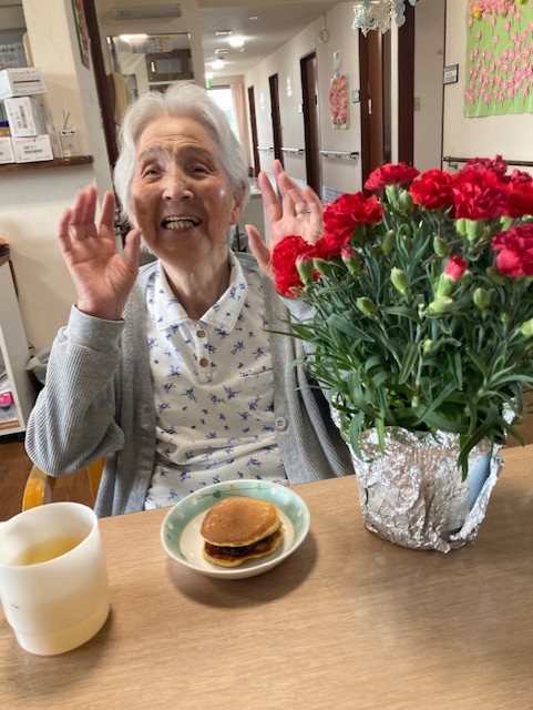 横浜瀬谷では「いつも優しい笑顔を有難うございます!!」と感謝を込めて、皆さんが大好きなどら焼きとカーネーションを贈らせていただきました!