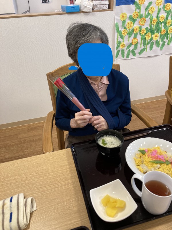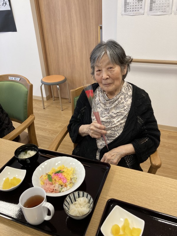 お昼のちらし寿司を召し上がる前にお写真を撮っています!!