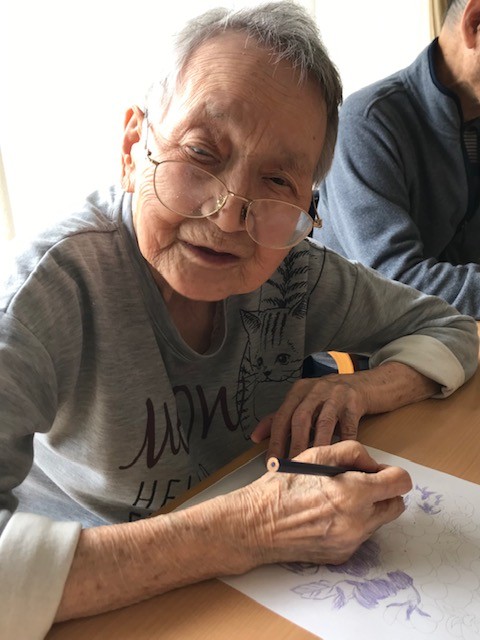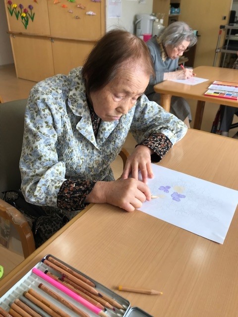 今日は季節のお花の絵をご用意し、皆様一緒に塗り絵をはじめました!