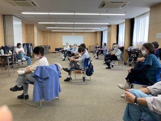 椅子に座った状態で呼吸を意識しながらゆっくりと頭から首、足の先までストレッチや運動していきました。