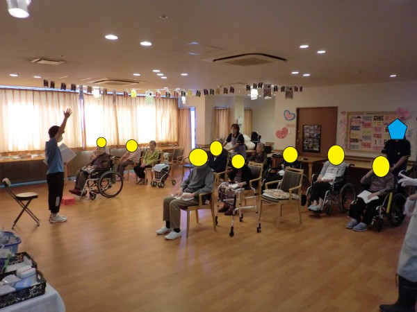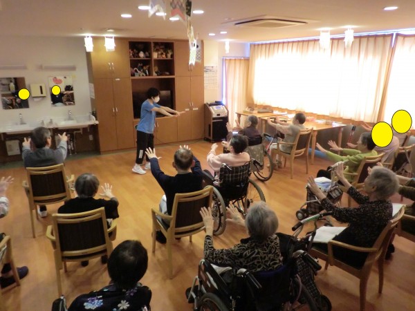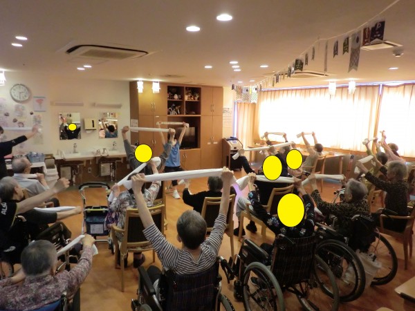 今回はタオルを使った体操の実施です。事前にチラシが配布されており地域の方でもご参加いただけるように手配されておりました。