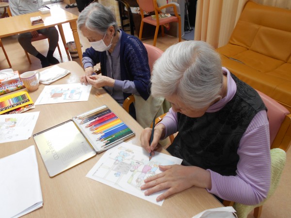 先日、ホームにて塗り絵レクを行いました。