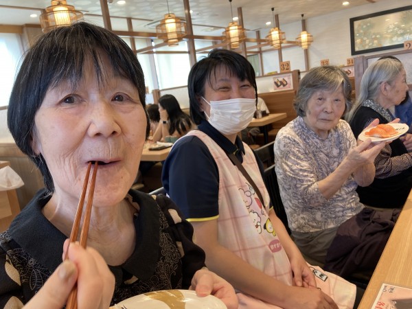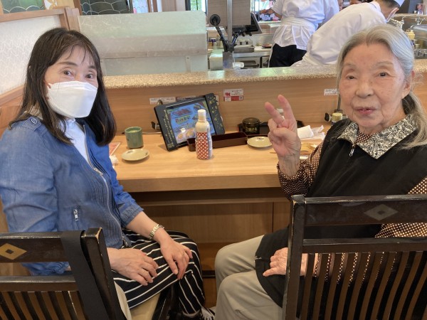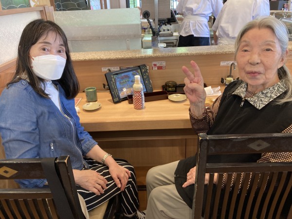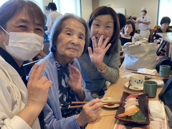 ご主人様と娘様が来てくださいました!ホームに入ってからなかなかご夫婦でお出かけする機会が無かったので外食でご一緒できて喜んでくださいました!!ありがとうございます!たくさん美味しいお寿司を召し上がられていました♪
