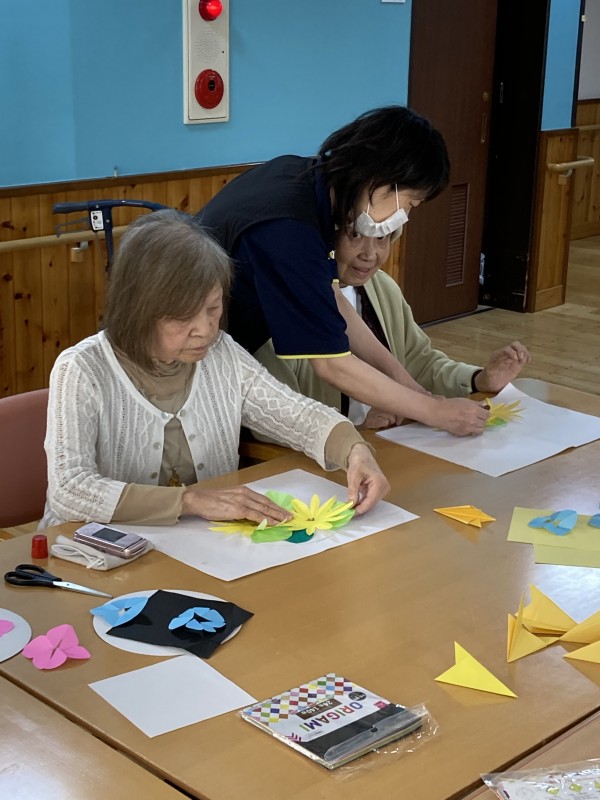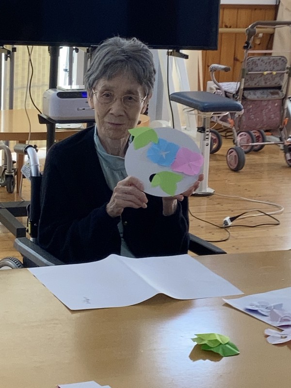 今日のレクはクラフトレク!少しづつ暑くなってきますが本格的な夏が来る前にみんなでうちわを作成しました。