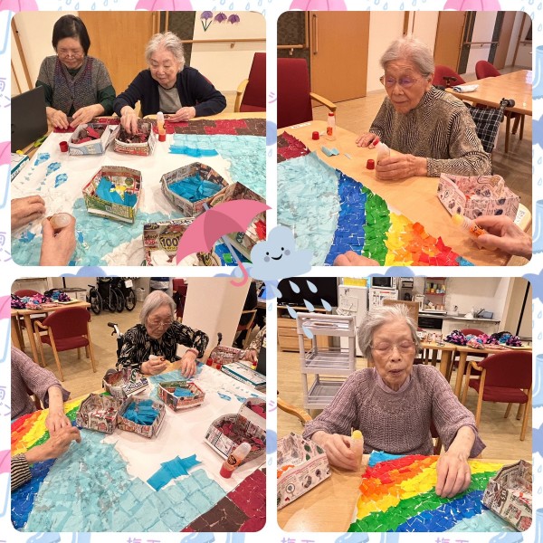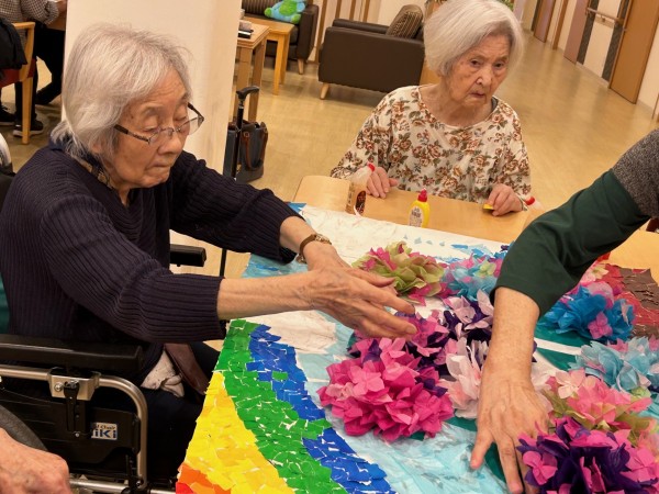 【アミカの郷ちとせ】(⌯'ᵕ'⌯)´-紫陽花のちぎり絵アートが完成いたしました♪