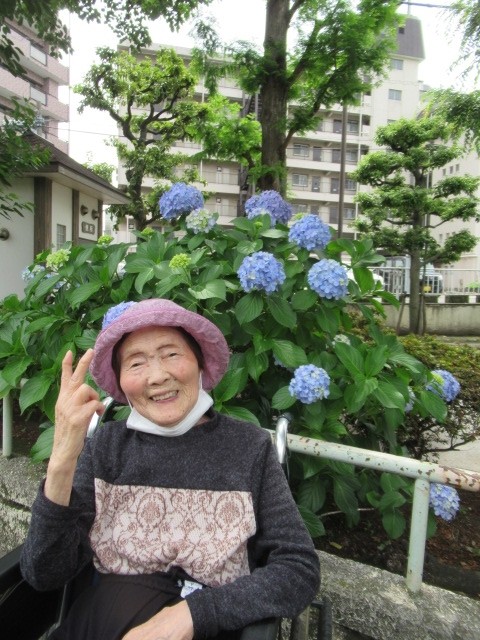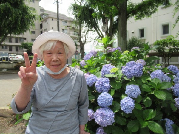 紫陽花を前に、笑顔いっぱい(#^.^#)