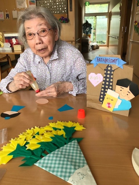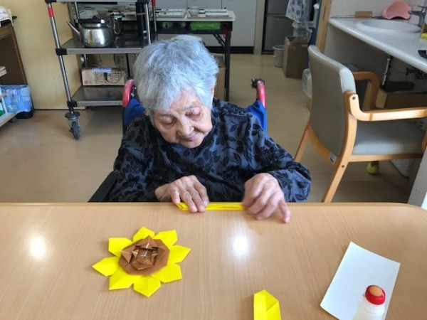丁寧に折り紙を折り、ホームの玄関と二階に飾ってあります