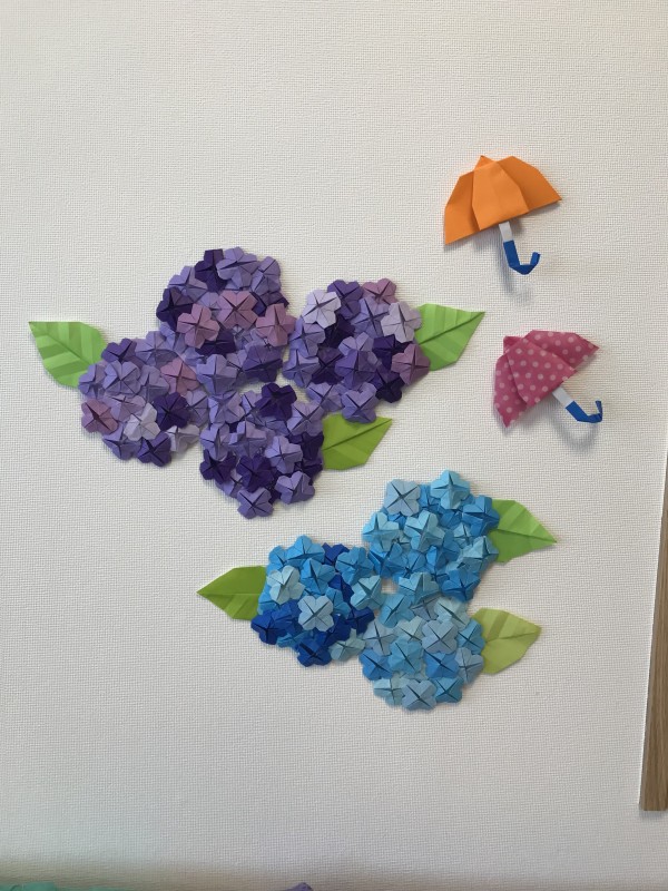 ※こちらのアジサイは2階の職員が作った折り紙の作品です
