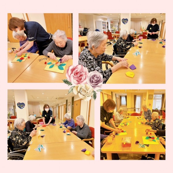 【アミカの郷とちとせ】折り紙レクリエーション☆彡バラの花を作りました