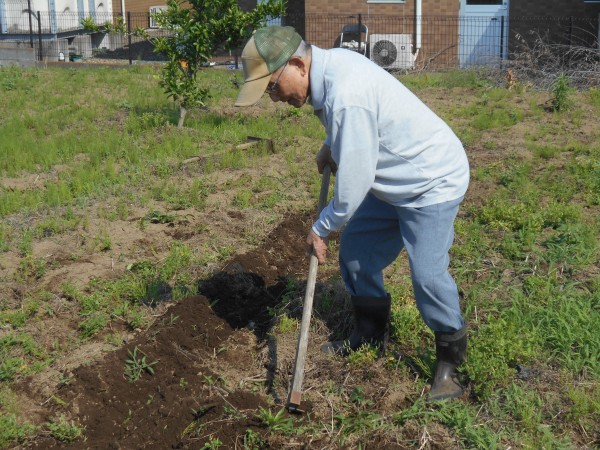 入居者様にも畑を耕すのを手伝っていただき、苗を植える準備を整えました。