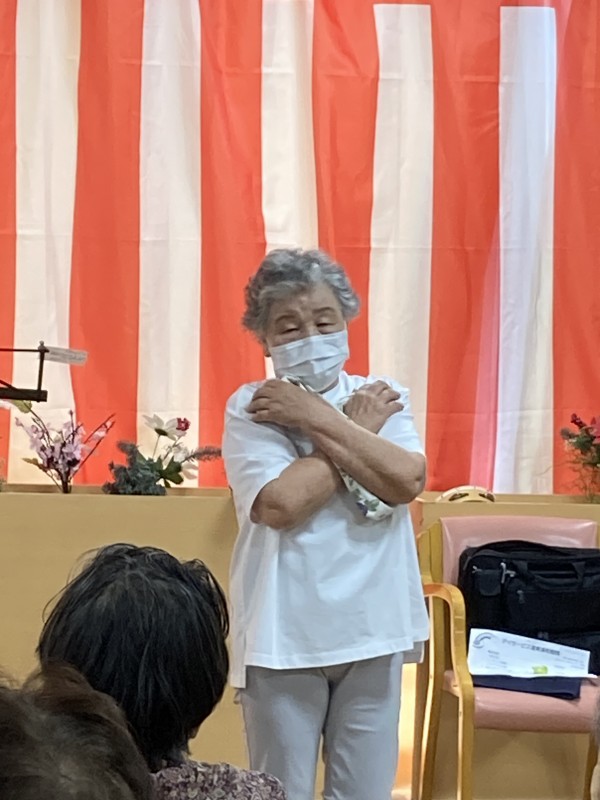 タオルを持って、一歩会の方々の動きに合わせました。中々難しかったです(笑)