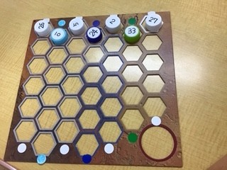 続いてのゲームは、、、、ボードの下に数字の盤を置いて、、、