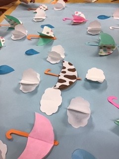 水玉の傘も、雲も、飛び出す感じで貼り付けましょう(#^.^#)