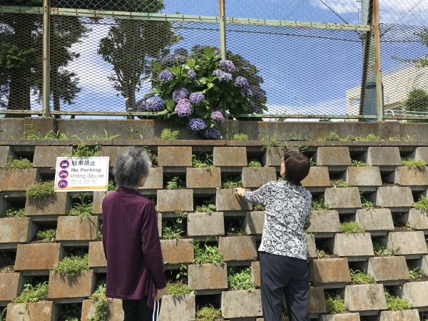 ホームの前に紫陽花が‼記念撮影です‼