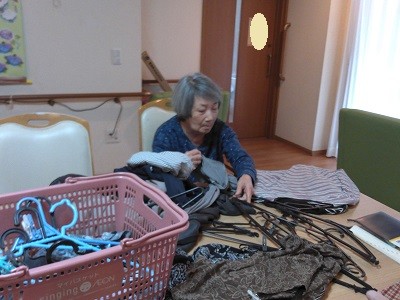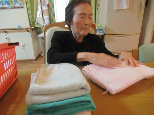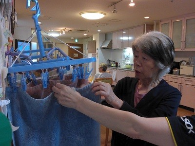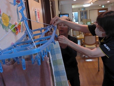 入浴日の洗濯物は・・・干したり、たたんだり。協力しておこないます。