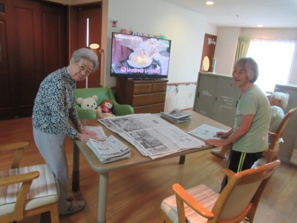 新聞を1枚ずつ。広げて、折って(*^^*)