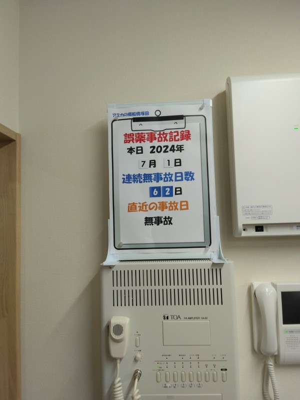 2024年5月1日にオープンしてから、今月まで誤薬事故が1件もありませんでした。
