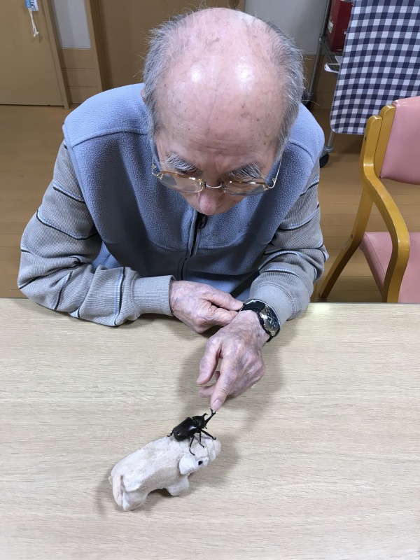 みんな童心に返ったように目を輝かせて珍客のカブトムシをご覧になってました。