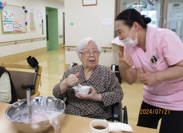 さて本日の、おやつはご利用者様とのレクリエーションも