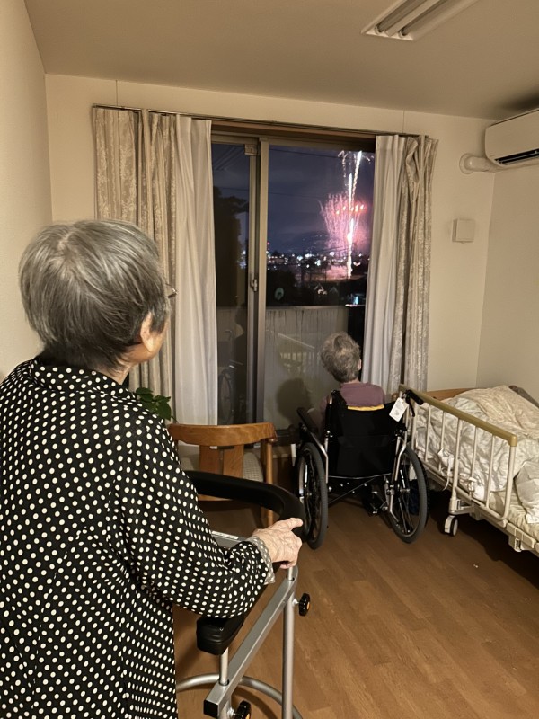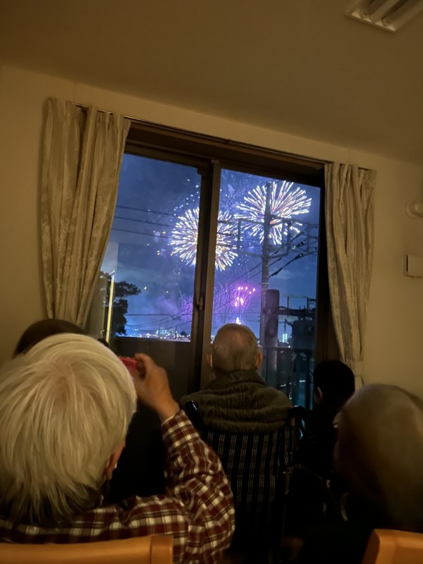 うちの施設は打ち上げ場所のすぐ近くなので数日前から「天気はどうかな?見れるかな?」と楽しみにされていたご利用者様達。