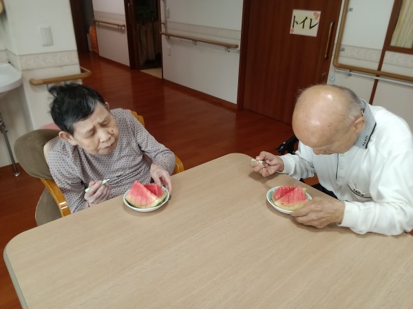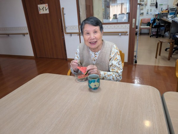 今回は旬なフルーツを職員が差し入れしてくれたので、皆でおやつに頂きました!(^^)!