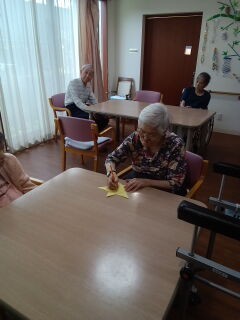 提灯や飾りの輪っか、天の川すべて折り紙で入居者様と一緒に完成させました('◇')ゞ