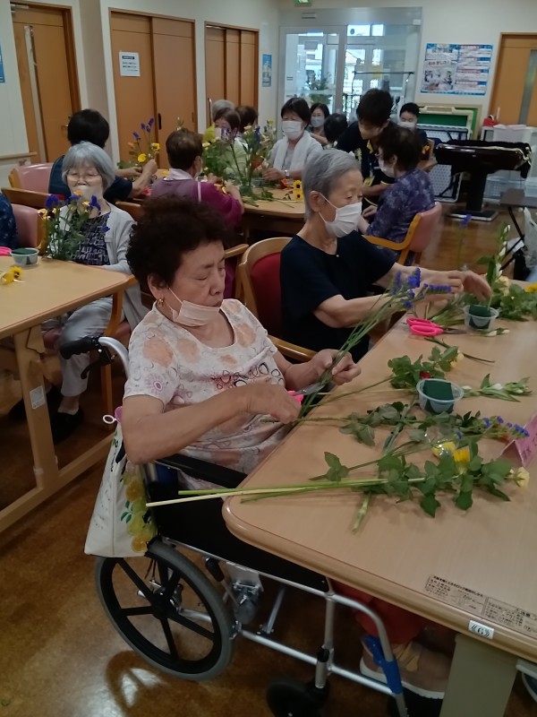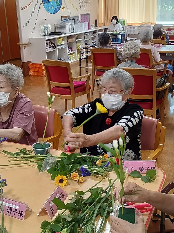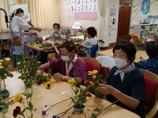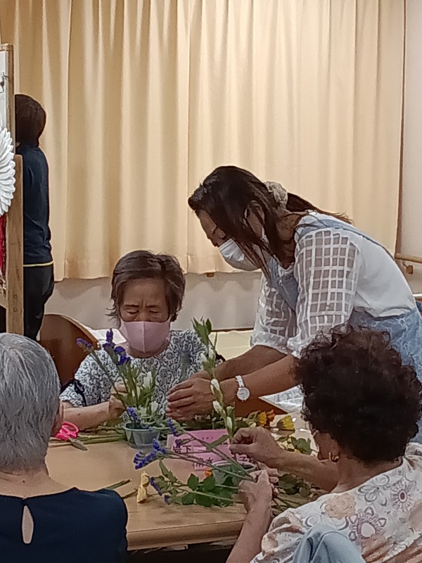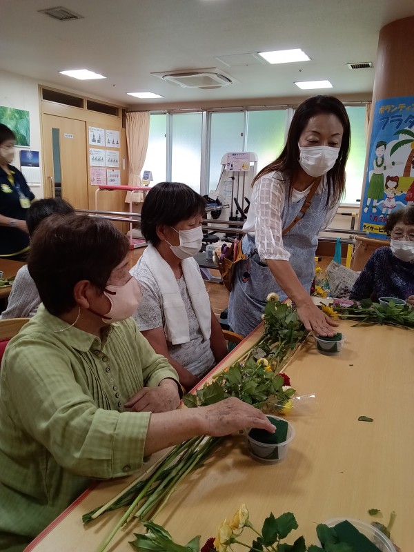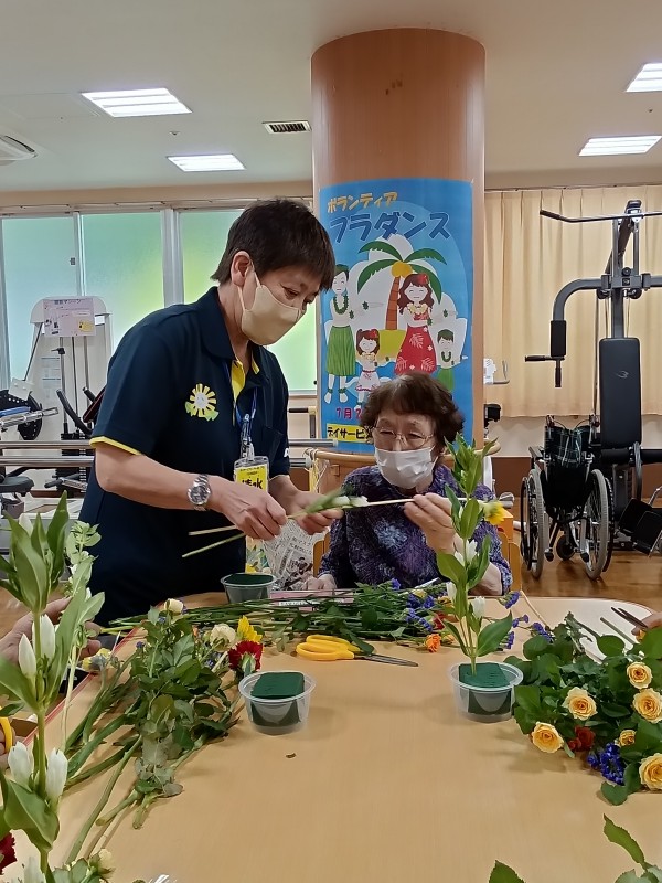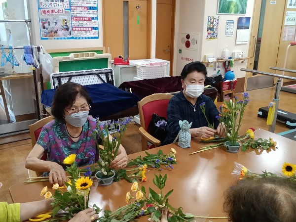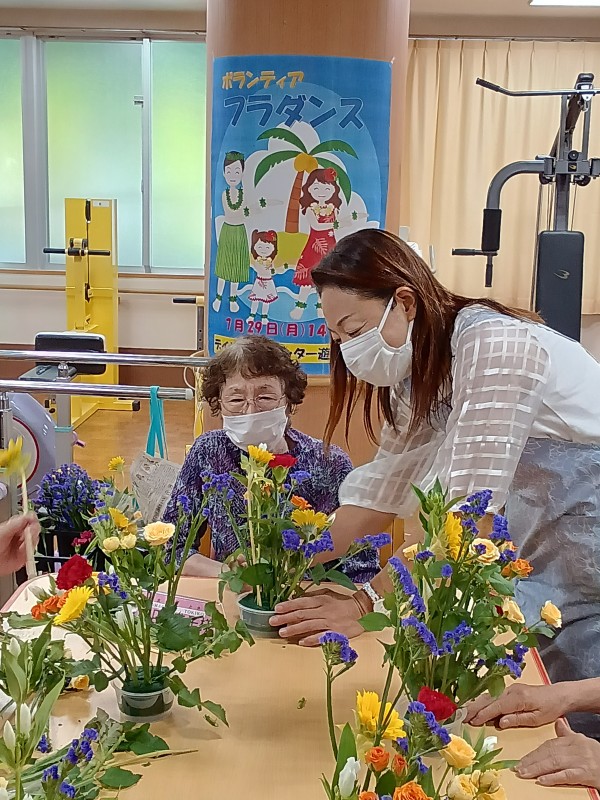 暑い中、クーラーの効いた避暑地(笑)遊・東浦和では毎月恒例のフラワーアレンジメント教室がありました。