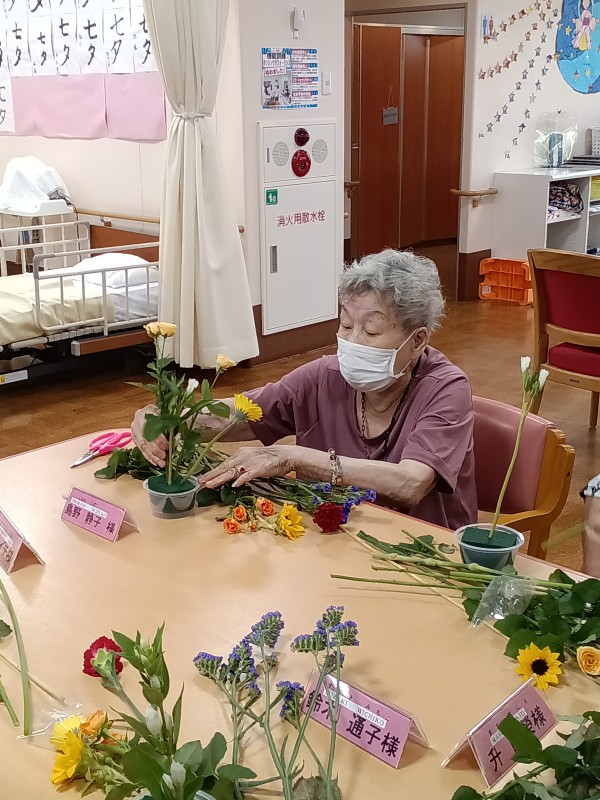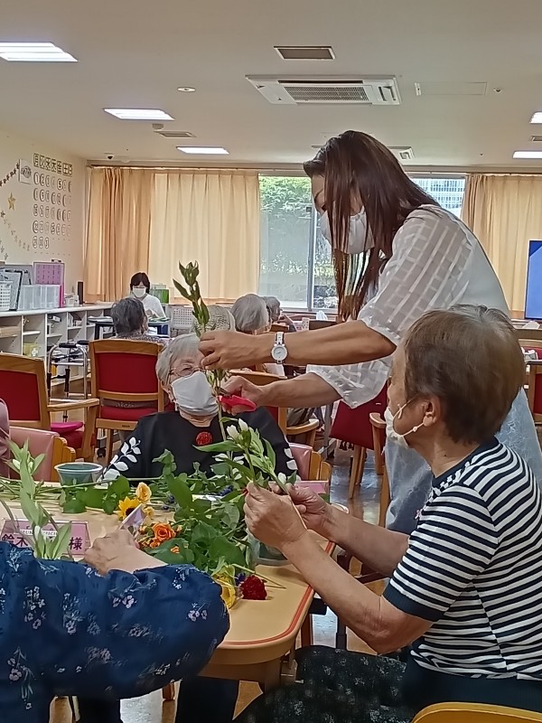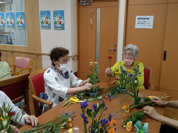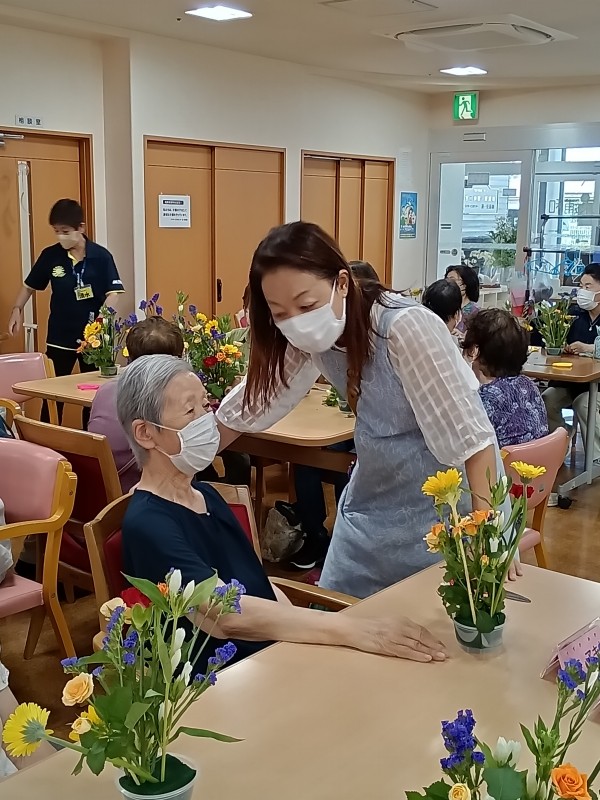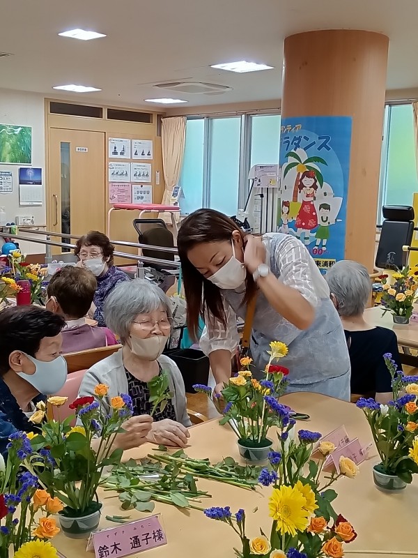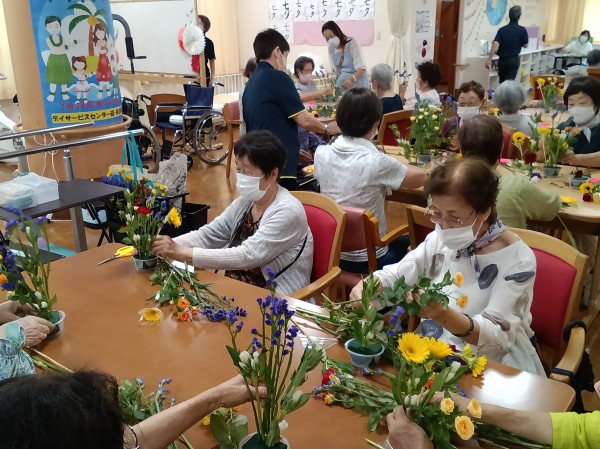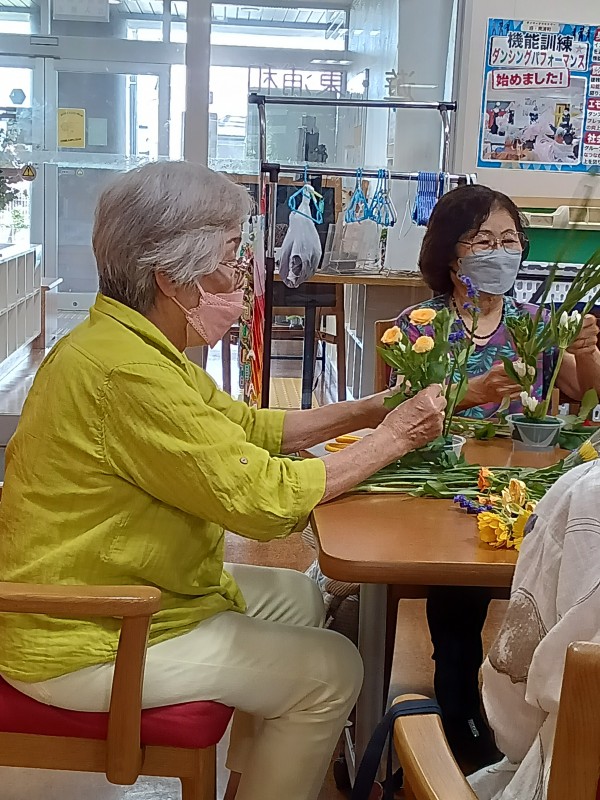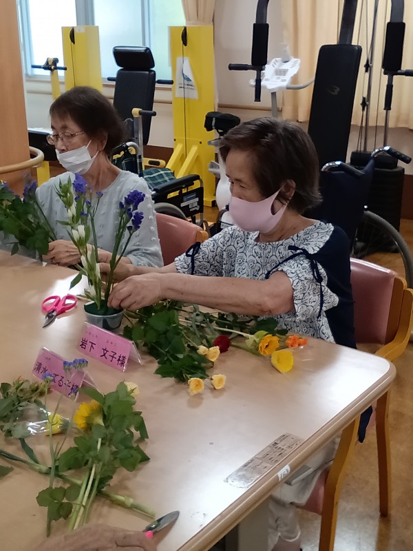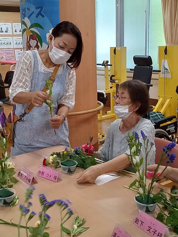 暑い中、クーラーの効いた避暑地(笑)遊・東浦和では毎月恒例のフラワーアレンジメント教室がありました。