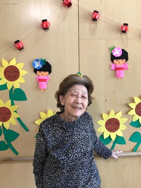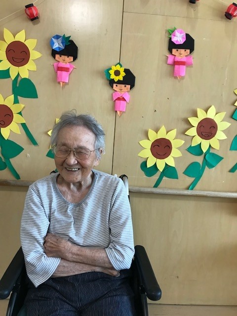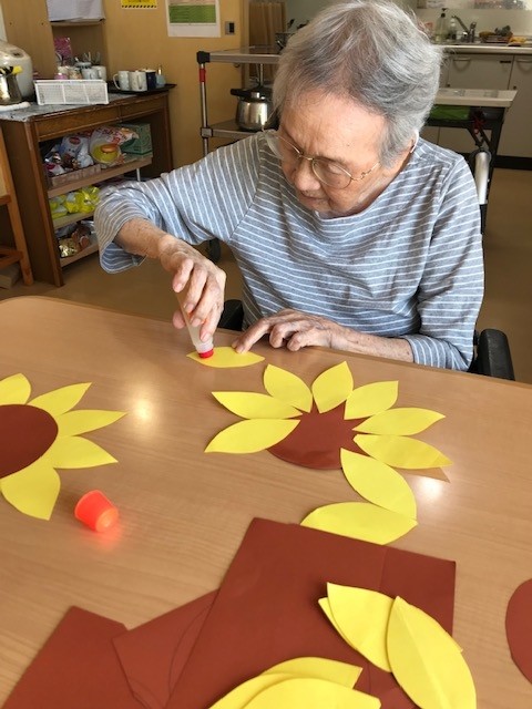 スタッフとともに、ヒマワリ作り、飾りを行いました!