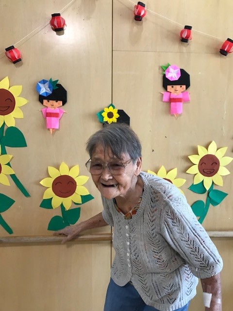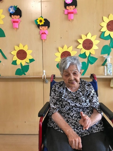 今回はホーム内に飾っている、手作りヒマワリを紹介いたします。