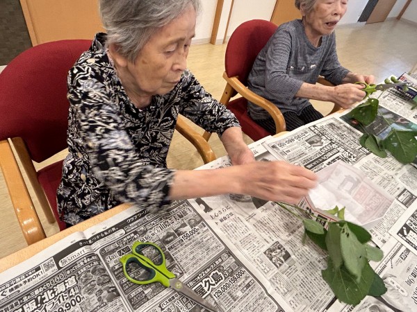 【アミカの郷ちとせ】こんにちは、園芸部会です ⸜( ˶'ᵕ'˶)⸝ ふっくら可愛い枝豆を収穫をしました。