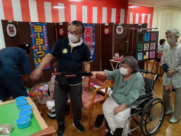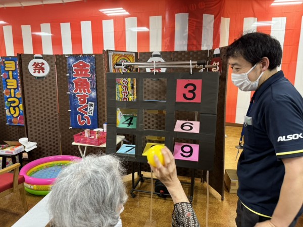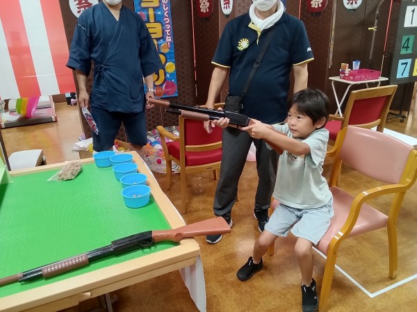 今年のラインナップは綿あめ・味噌田楽・たこ焼き・かき氷・焼きそば・射的・ヨーヨー釣り・金魚すくい・ストラックアウトの9つでした!