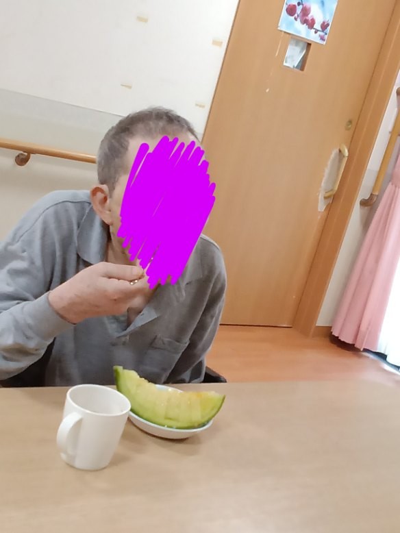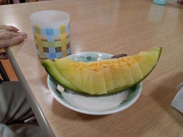 二階のご利用者様のご家族様よりメロンが届き、一階の方にもどうぞと差し入れをしていただきました!