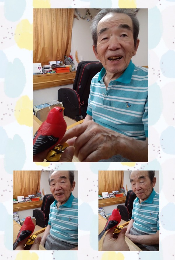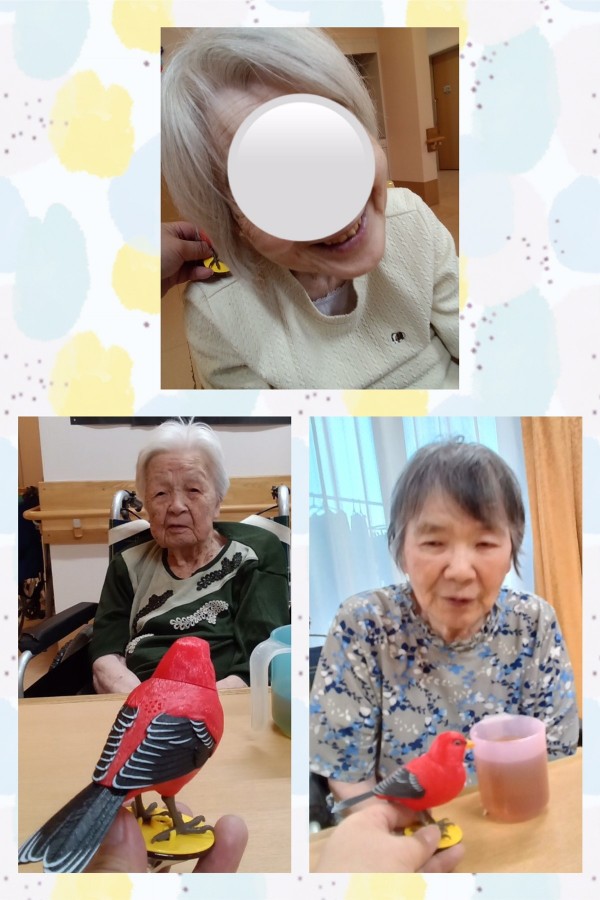 スタッフルームに可愛い赤い鳥のお人形がありました(^^)スイッチを入れるととっても綺麗な囀りに癒されます♪