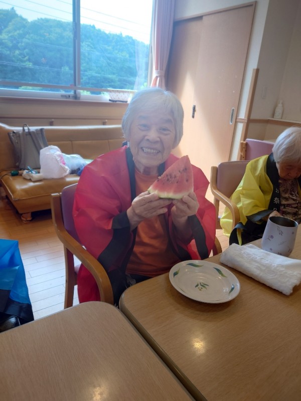 スイカをそのまま召し上がれない方にはジュースにしてお出ししましたが、ゴクゴクと美味しそうに飲まれていました(^^♪