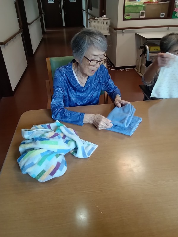 午後は洗濯物たたみ等の家事をお願いしたり、DVDなどで体操など身体を動かしていただいています