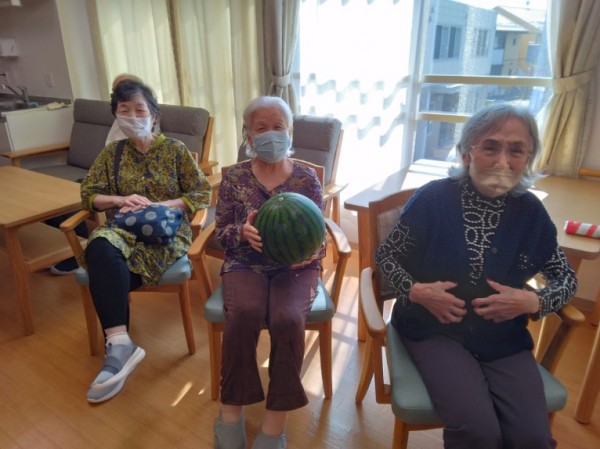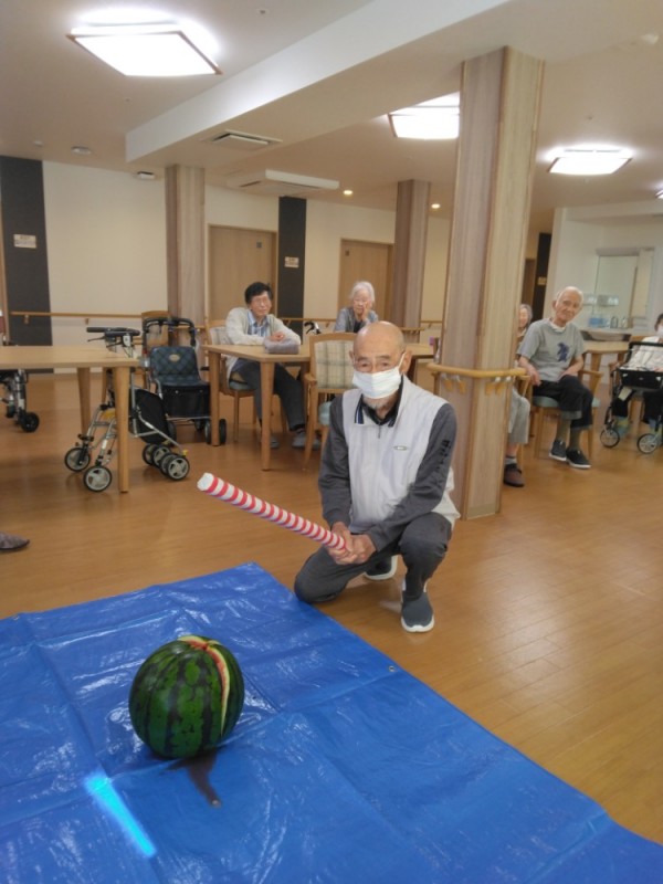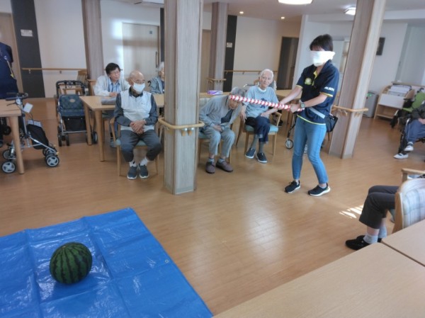 割れたスイカは、その日のおやつと一緒に皆さんへ提供させていただきました。