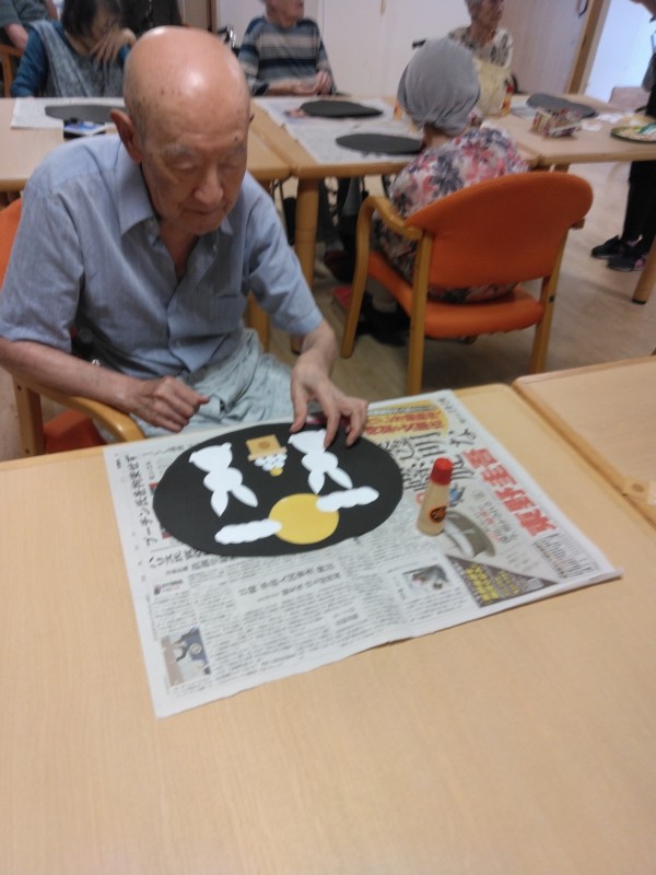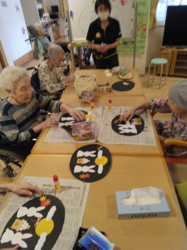 昨日のレクリエーション活動では「お月見飾り作り」1コマをご紹介致します。