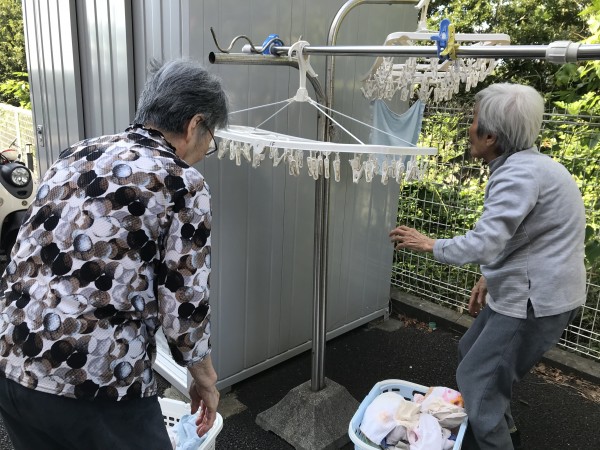 今回は皆さんで、外に洗濯物干しを手伝って頂きました。