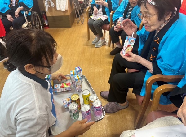 納涼祭も盛り上がっていますが、レクリエーションだけでなくジュースやアイスクリームなども召し上がりひと休憩して頂きました!