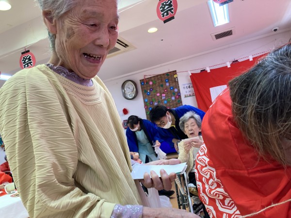 ご利用者様も祭りの雰囲気で夏祭りの法被はっぴを羽織る