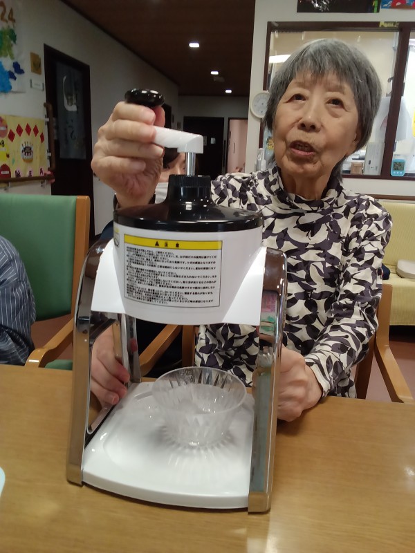 かき氷を入居者様ご自身で作っていただきました(とても素敵ですよね)