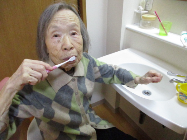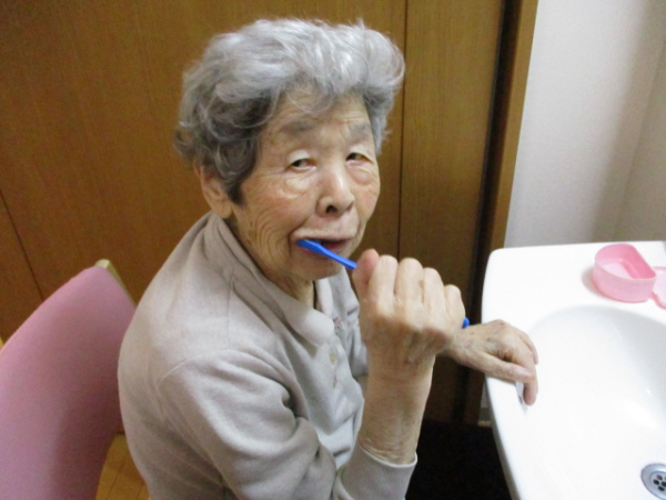 服薬後、スタッフとお部屋へ戻られ見守りによる口腔ケアをしていただきます(*^-^*)