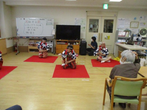 3. 本日は敬老会です!第1弾 お祝いイベント『南京玉すだれと銭太鼓』です!